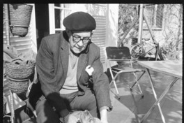 Alberto Romero [su casa, junto a Colette, su perra cocker spaniel] [fotografía] / Hans Ehrmann. [Chile] : Hans Ehrmann, [ca. 1965]. 4 fotografías: Negativos; 6X6 cm. .