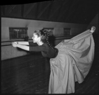 Patricia Aulestia [Ensayo del ballet en un acto "Concertino", coreografía de Pauline Koner y música de Pergolesi] [fotografía] Hans Ehrmann.