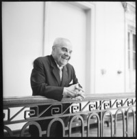[Rafael Maluenda apoyado sobre una baranda] [fotografía] 1961 1 fotografía: Negativo; 6X6 cm. .