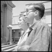 [Miguel Smirnoff junto a una mujer] [fotografía] / Hans Ehrmann. [Lugar no identificado] : Hans Ehrmann, [1960?]. Negativo : monocromo, gelatina sobre acetato de celulosa ; 6 X 6 cm. .