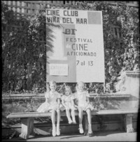 [Tres niñitas posan bajo un afiche del Cine Club Viña del Mar, anuncia el 1er. Festival de Cine Aficionado] : 7 al 13 de febrero de 1963 [fotografía] Hans Ehrmann.