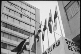 [Vista de la marquesina del teatro, con el siguiente título: "5° Festival de Cine de Viña del Mar, entre el 1° y el 8 de marzo 1967. Encuentro de cineastas latinoamericanos] [fotografía] / Hans Ehrmann. [Viña del Mar] : Hans Ehrmann, 1967. Negativo : monocromo, gelatina sobre acetato de celulosa ; 6 X 6 cm. .