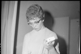 [Retrato de una mujer joven sosteniendo un equipo de radio] [fotografía] Junio y Julio 1960. 1 fotografía: Negativo; 6X6 cm. .