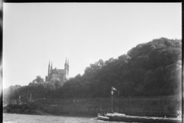 Vista de un río y castillo, ciudad de Bonn [fotografía] Hans Ehrmann.