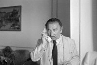 Hombre hablando por teléfono [fotografía] Hans Ehrmann.