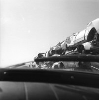 [Conjunto de autos chocados sobre una plataforma] [fotografía] / Hans Ehrmann. California : Hans Ehrmann, [19--]. Negativo : monocromo, gelatina sobre acetato de celulosa ; 35 mm. .