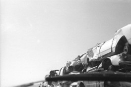 [Conjunto de autos chocados sobre una plataforma] [fotografía] Hans Ehrmann.