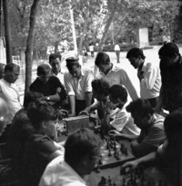 [Grupo de personas observan una partida de ajedrez] [fotografía] / Hans Ehrmann. [Lugar no identificado] : Hans Ehrmann, [19--]. Negativo : monocromo, gelatina sobre acetato de celulosa ; 35 mm. .
