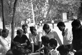[Grupo de personas observan una partida de ajedrez] [fotografía] Hans Ehrmann.