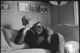 Alberto Romero, [sentado en un sillón del living de su casa] [fotografía] Hans Ehrmann.