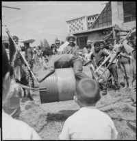 [Diversiones; Juego elaborado con tambor y cordeles] [fotografía] Hans Ehrmann.