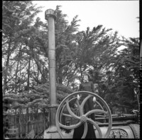 [Margarita Aguirre a bordo de un locomóvil (máquina a vapor sobre ruedas); casa de Pablo Neruda, Isla Negra] [fotografía] / Hans Ehrmann. [Isla Negra] : Hans Ehrmann, 1966. 3 negativos : monocromo, gelatina sobre acetato de celulosa ; 6 X 6 cm. .