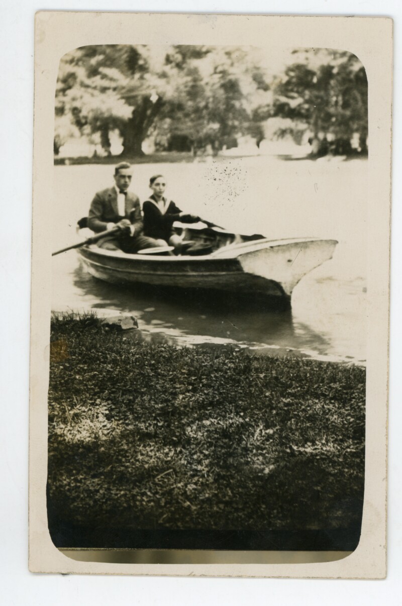 José Ureta Valdés y su hijo José Ureta Casanova; paseo en bote [fotografía] Casa Hans Frey.