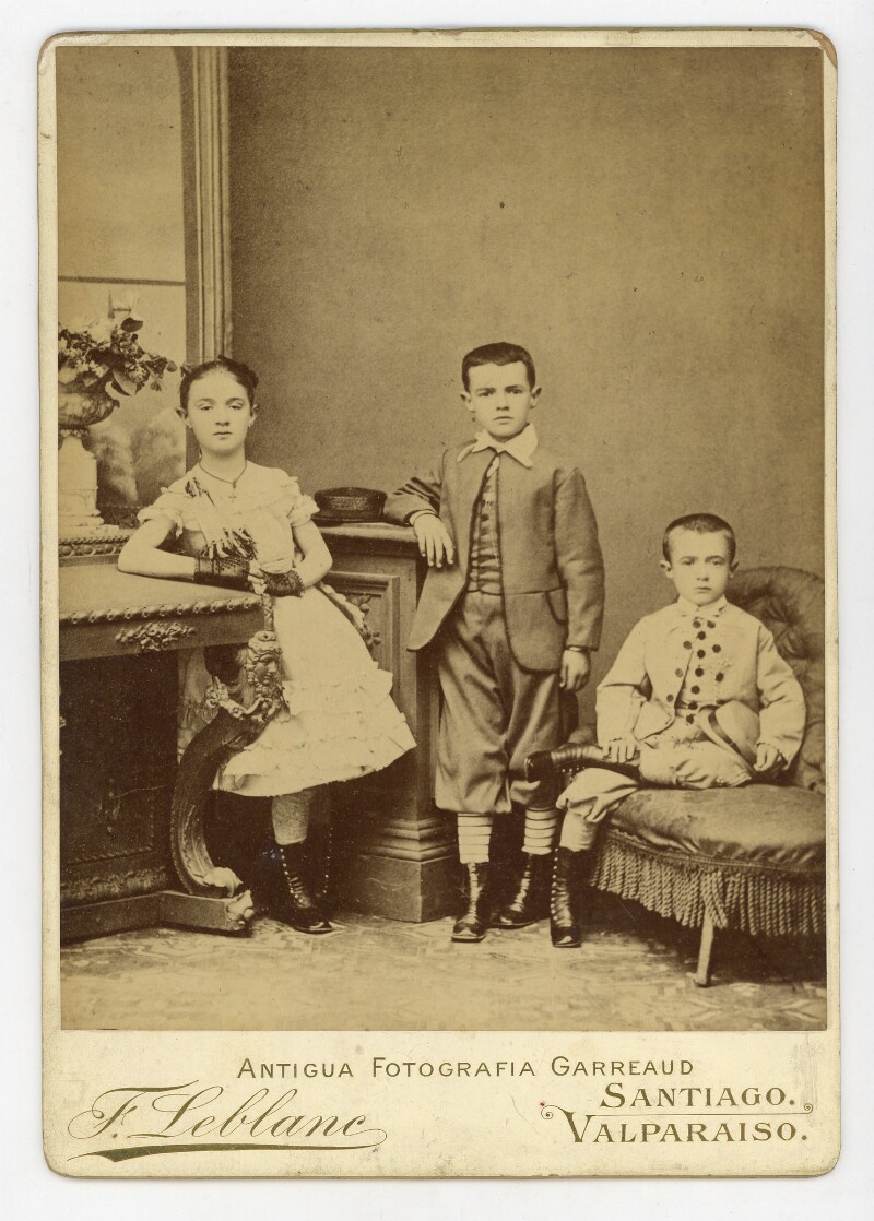 Hermanos Cecilia, Luis y Ramón Vicuña Subercaseaux, hijos de Nemesio Vicuña Mackenna y Manuela Subercaseaux Vicuña [fotografía] F. Leblanc/Antigua fotografía Garreaud.