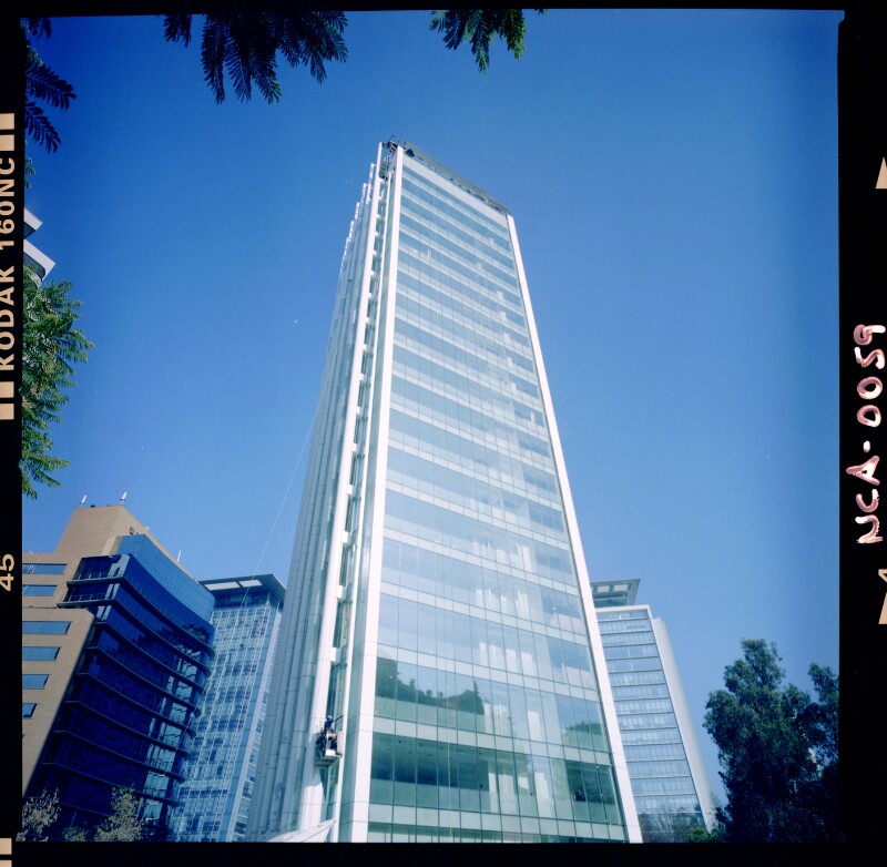 [Alta torre de departamentos, aledaño a otros edificios de gran altura] [fotografía] Jack Ceitelis.