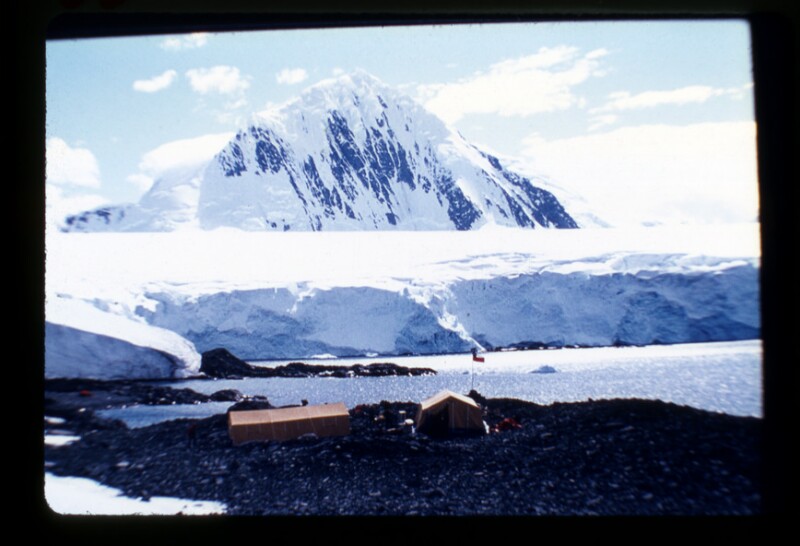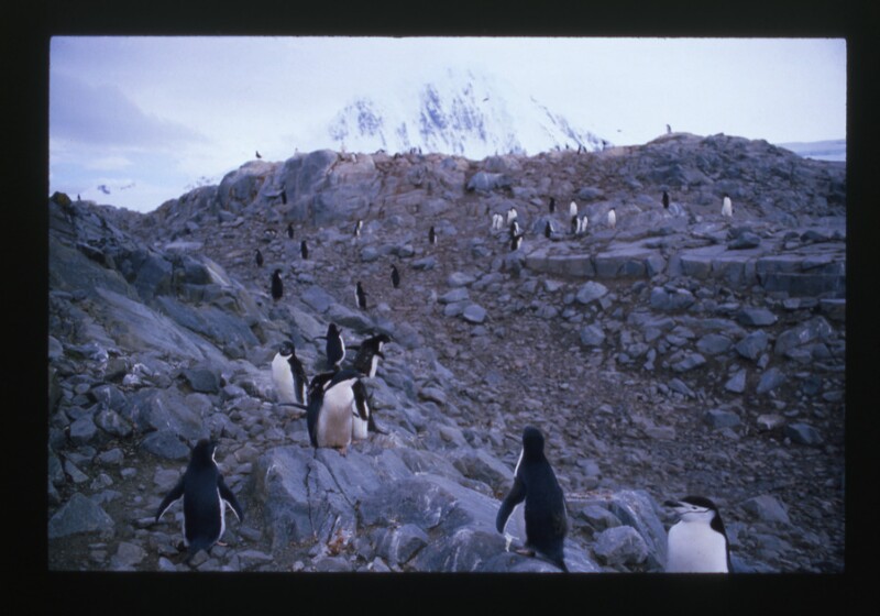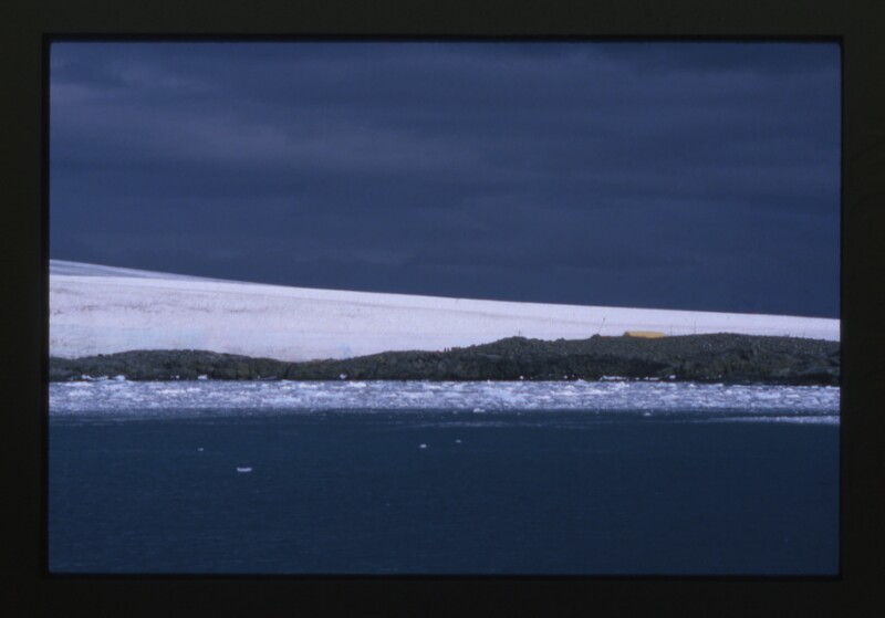 [Asentamiento de pingüinos y glaciar] [fotografía] Jack Ceitelis.