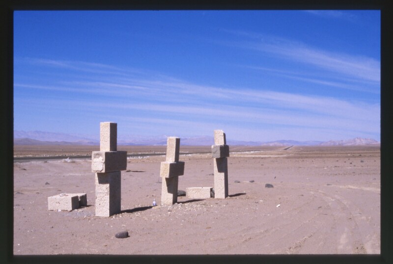 [Tres cruces de piedra en el desierto] [fotografía] Jack Ceitelis.
