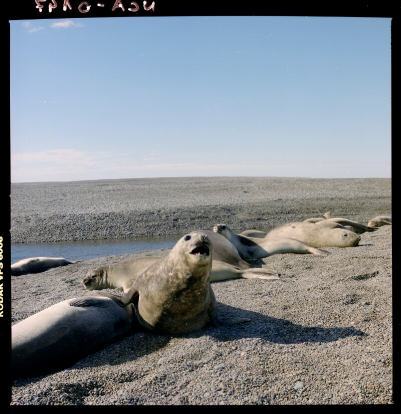 Antártica [Colonia de pingüinos y lobos marinos] [fotografía] Jack Ceitelis.