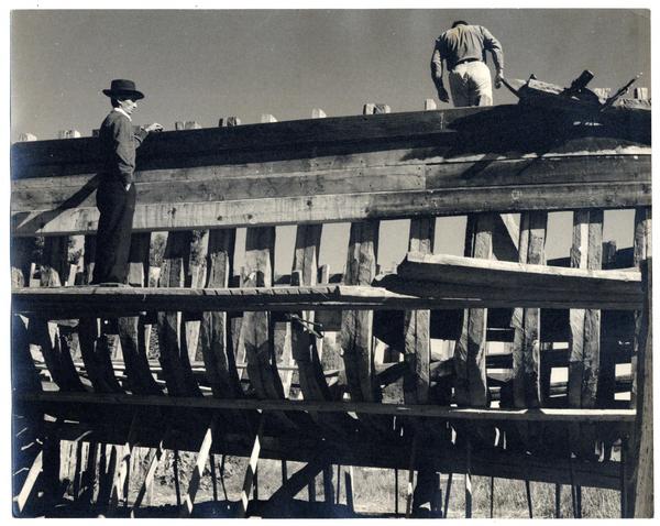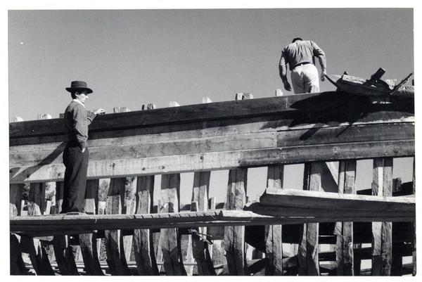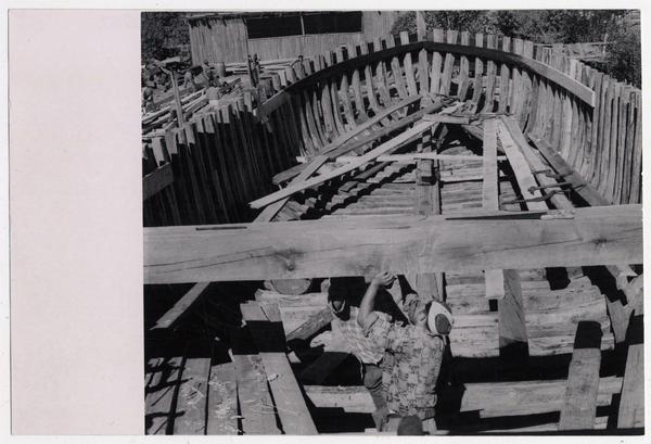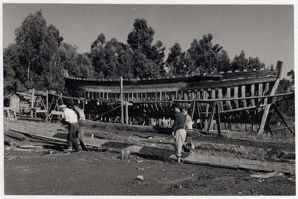 [Astilleros del Maule; carpinteros de caleta en labores de contrucción] [fotografía] Domingo Ulloa