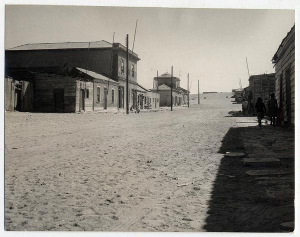 [Vista parcial, fachada del Teatro Cervantes y otros edificios; Punta Arenas] [fotografía] Domingo Ulloa.