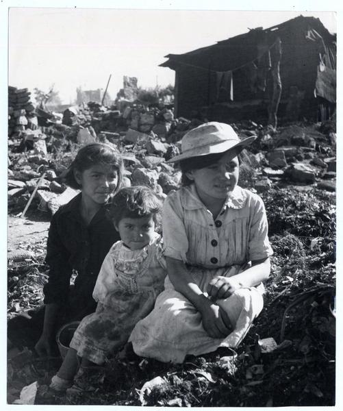 [Tres niños sentados en el umbral de la casa] [fotografía] Domingo Ulloa.