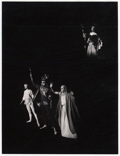 [Ballet Nacional Chileno] : Ballet "Alotria" : Oscar Escauriaza [Graciela Gilberto y Elly Griebe; en el rol de enmascarados] [fotografía] Domingo Ulloa.