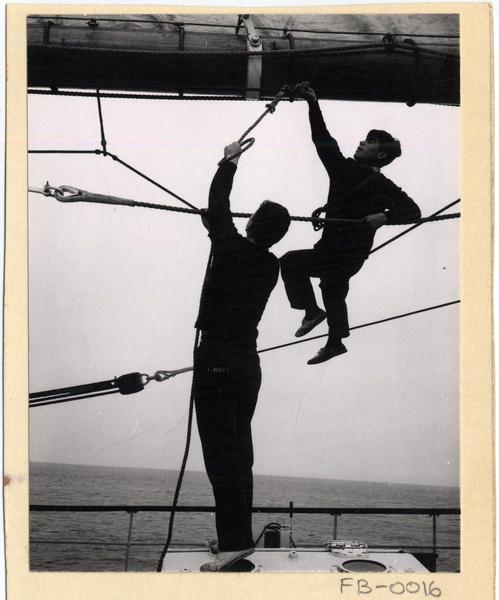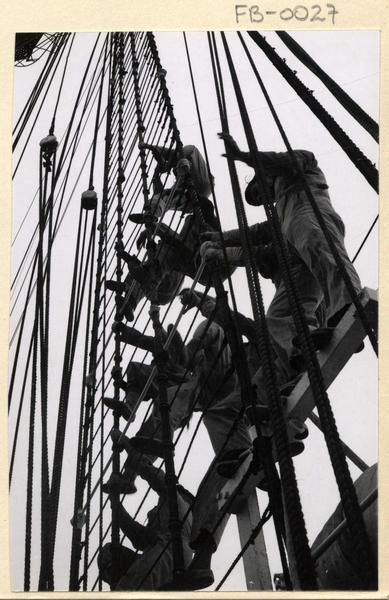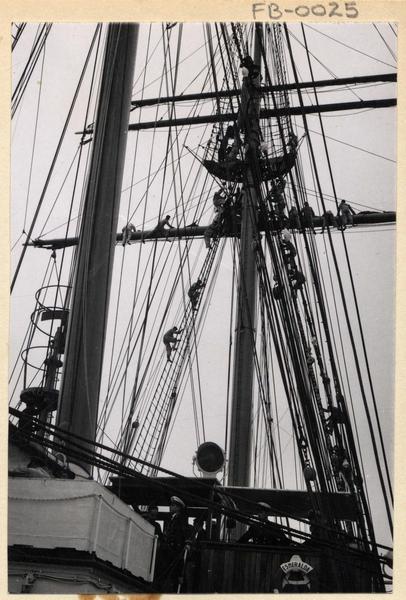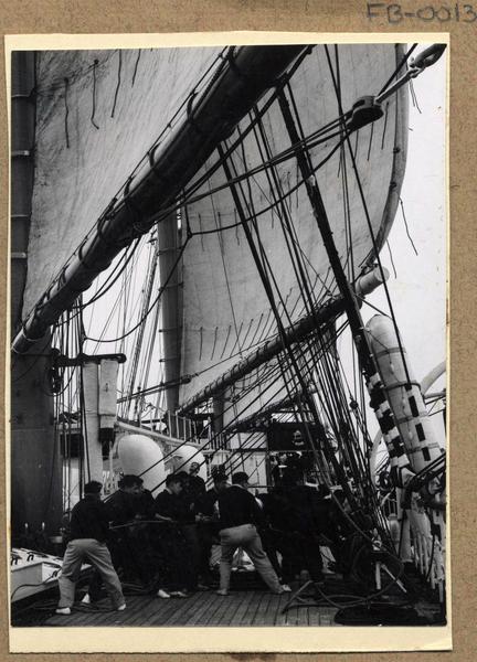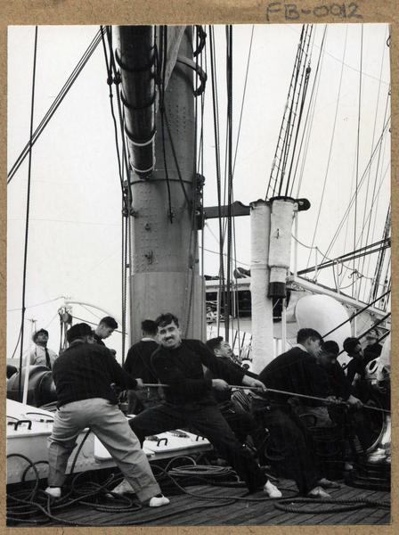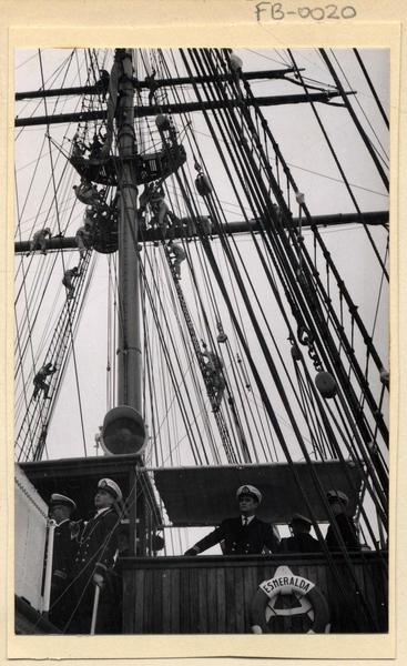 [Tripulantes en la cubierta de "La Esmeralda"] [fotografía] Domingo Ulloa.