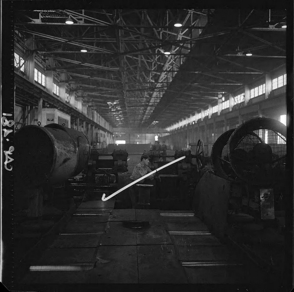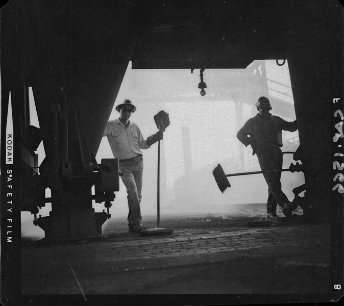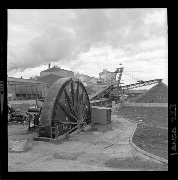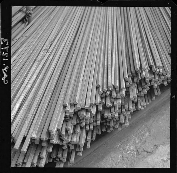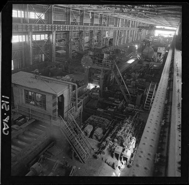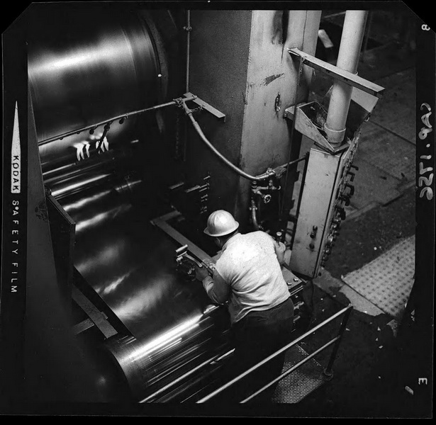 [Compañía de Acero del Pacífico : Alto Horno, fundición de acero Huachipato; Bobinas de acero] [fotografía] Luis Ladrón de Guevara.