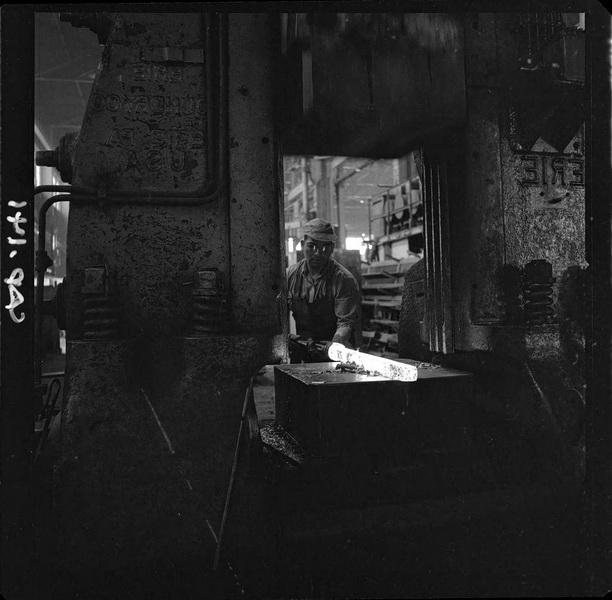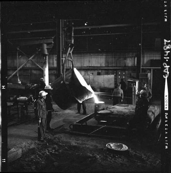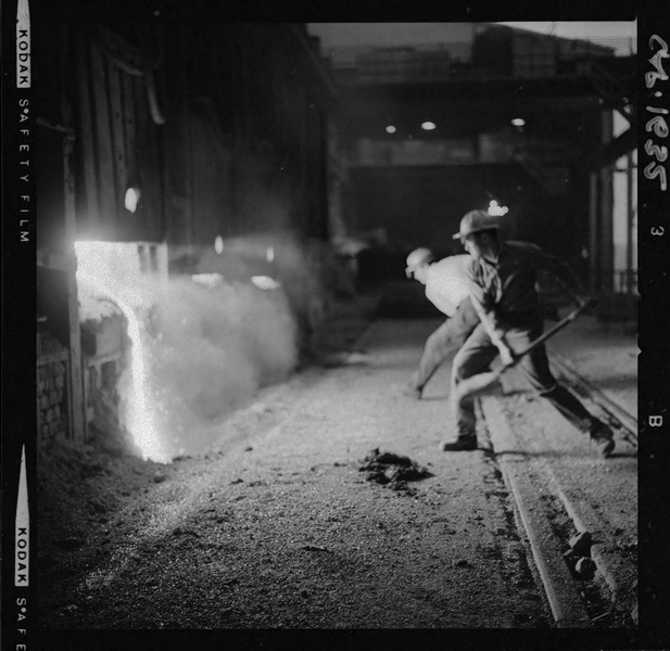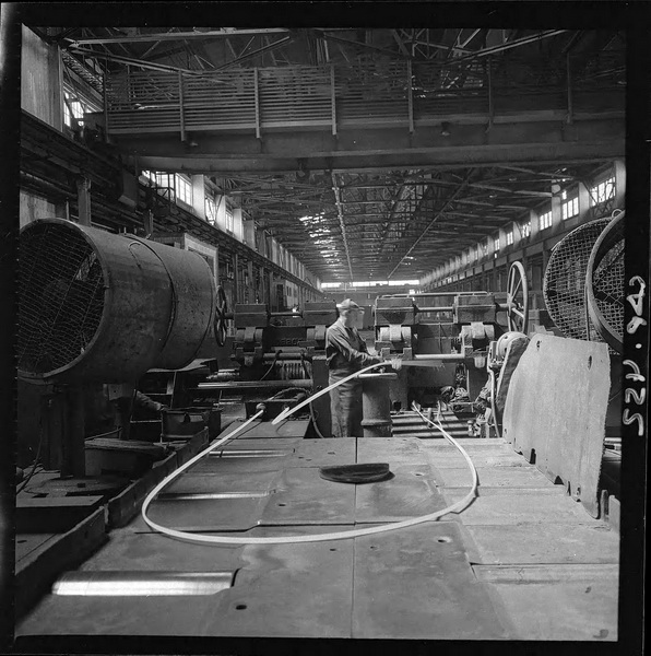 Trabajador en el proceso de laminación en la fundición de acero [fotografía] Luis Ladrón de Guevara.