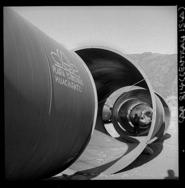 [Tuberías de acero, construidas por CAP : 3,60 m. de diámetro y 80 m. de longitud] [fotografía] Luis Ladrón de Guevara.