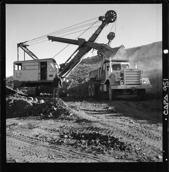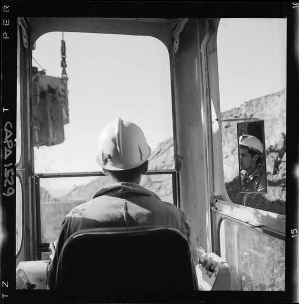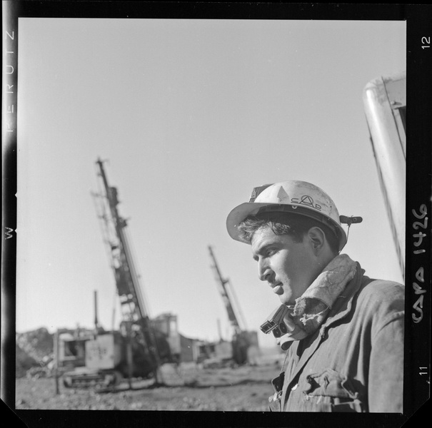 [Trabajador y equipo minero, exterior mina "El Algarrobo"] [fotografía] Luis Ladrón de Guevara.