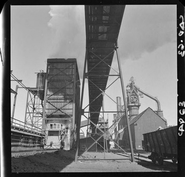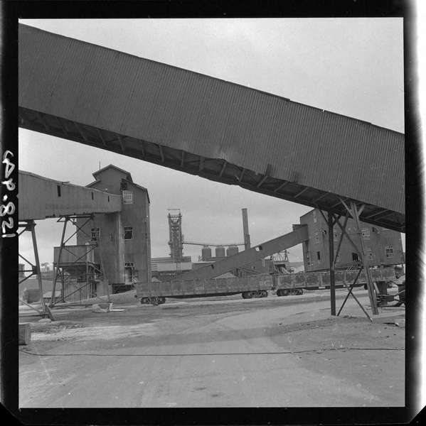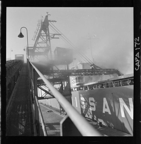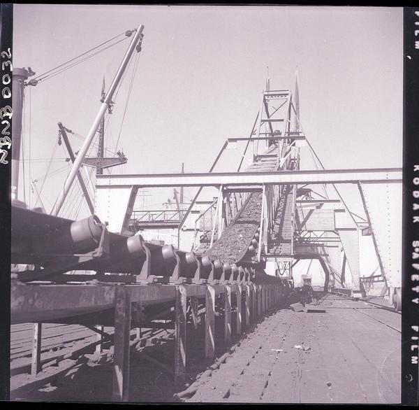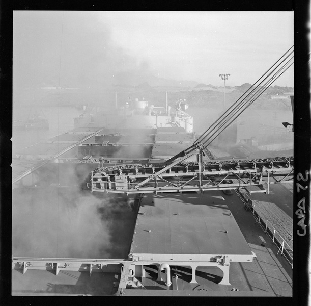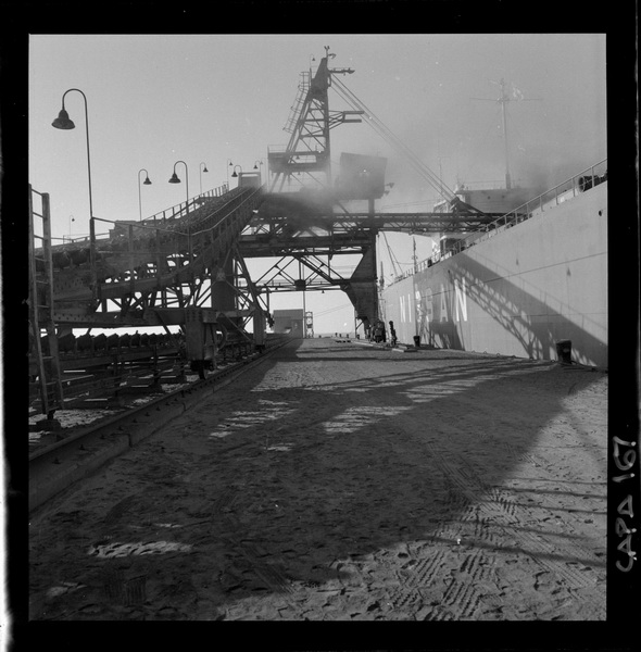 [Carbón conducido por la cinta transportadora hasta el cargador móvil, instalado en el muelle de embarque] [fotografía] Ignacio Hochhäusler.