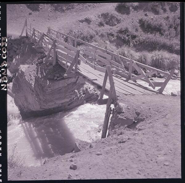 Bocatoma ubicada a 2600 m. sobre el nivel del mar : capta el agua del río Los Molles y mediante dos compuertas la entrega al canal de aducción. Este discurre cubierto por 17 km. hasta la cámara de carga [fotografía] Luis Ladrón de Guevara.