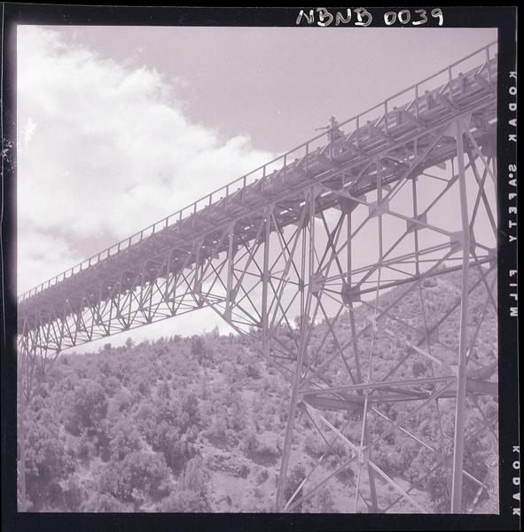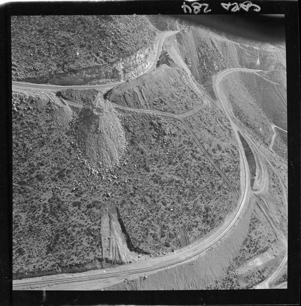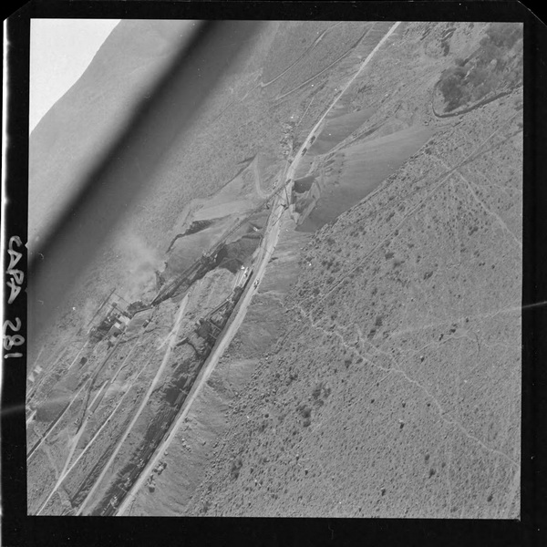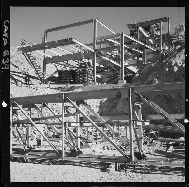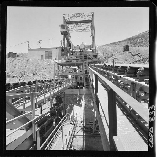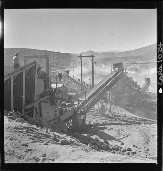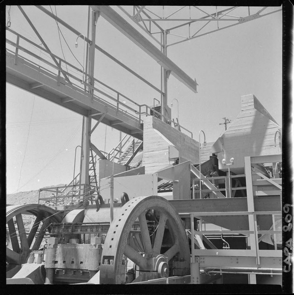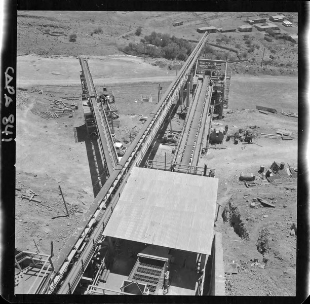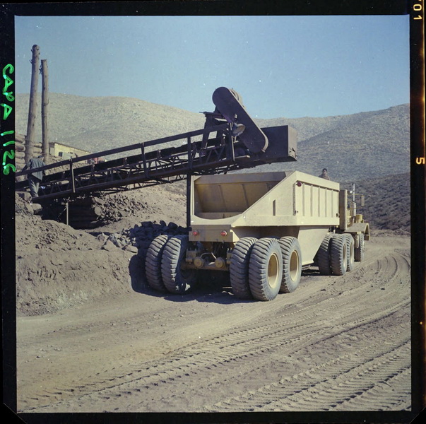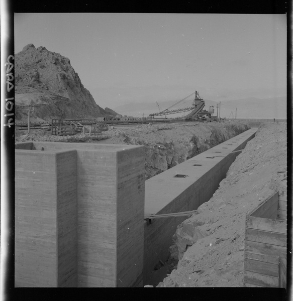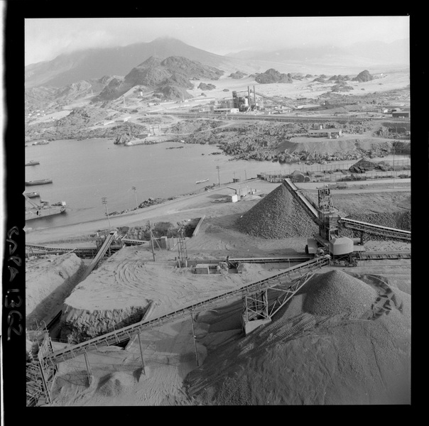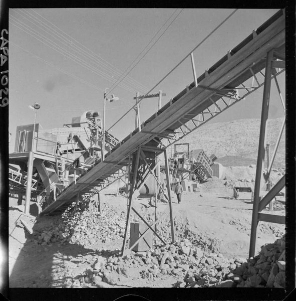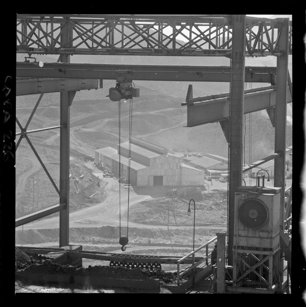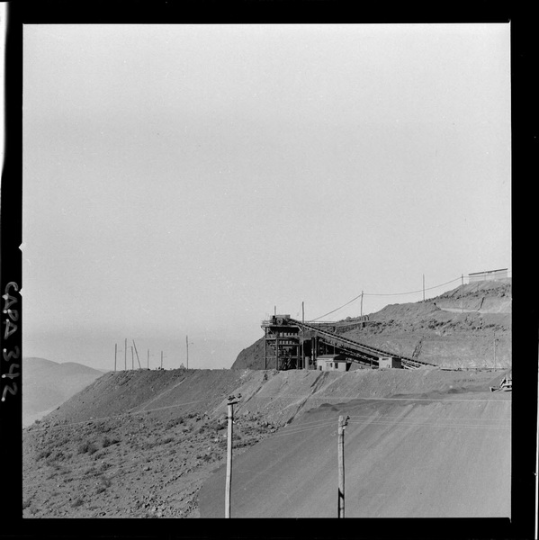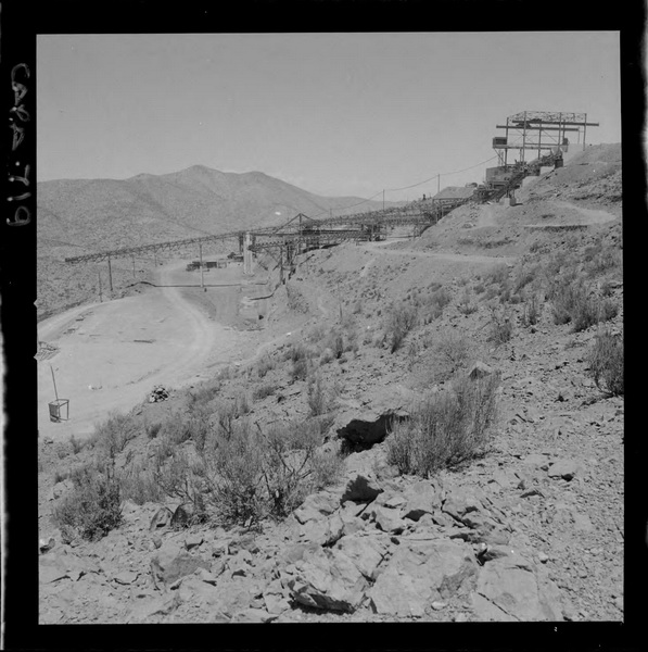 [Puerto de embarque; faja transportadora de minerales y contenedores a tajo abierto; yacimiento "El Algarrobo"] [fotografía] Luis Ladrón de Guevara.