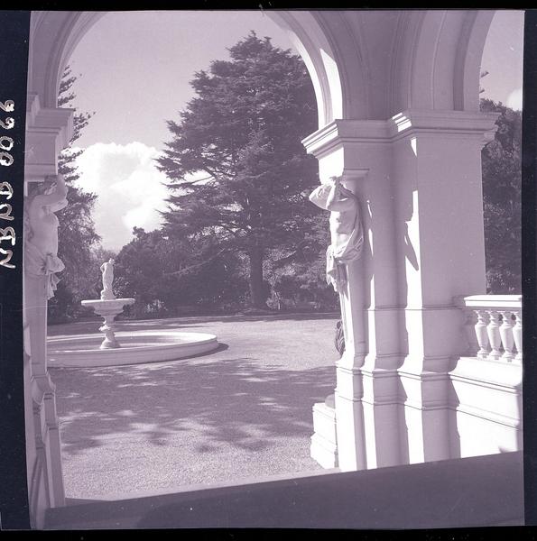 [Vista de una escultura y del faro del parque de Lota] [fotografía] Julio Bertrand Vidal.