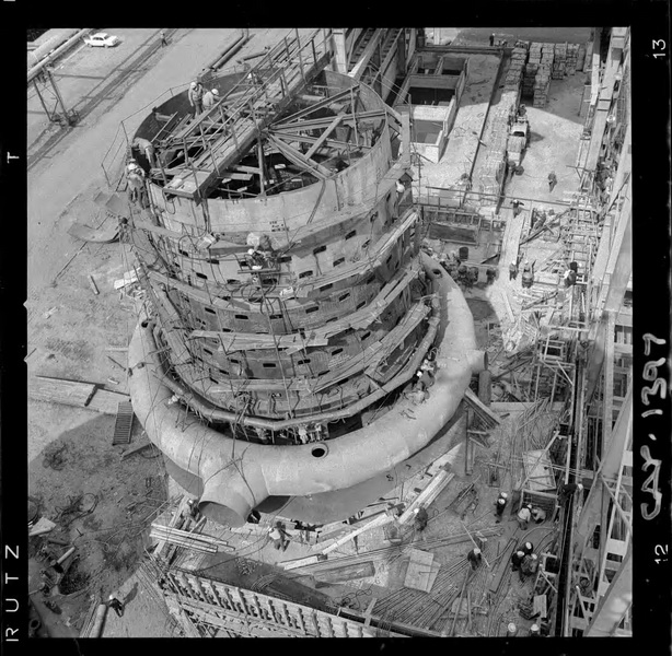 [Ttuberías de acero construidas por CAP : 3,60 m. de diámetro y 80 m. de longitud] [fotografía] Luis Ladrón de Guevara.