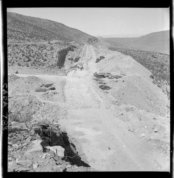 [Trabajos en la línea férrea que transporta el hierro de "El Algarrobo" hasta el puerto de Huasco] [fotografía] Luis Ladrón de Guevara.