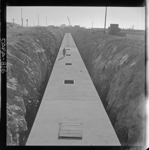 [Tuberías de acero, construidas por CAP : 3,60 m. de diámetro y 80 m. de longitud] [fotografía] Luis Ladrón de Guevara.