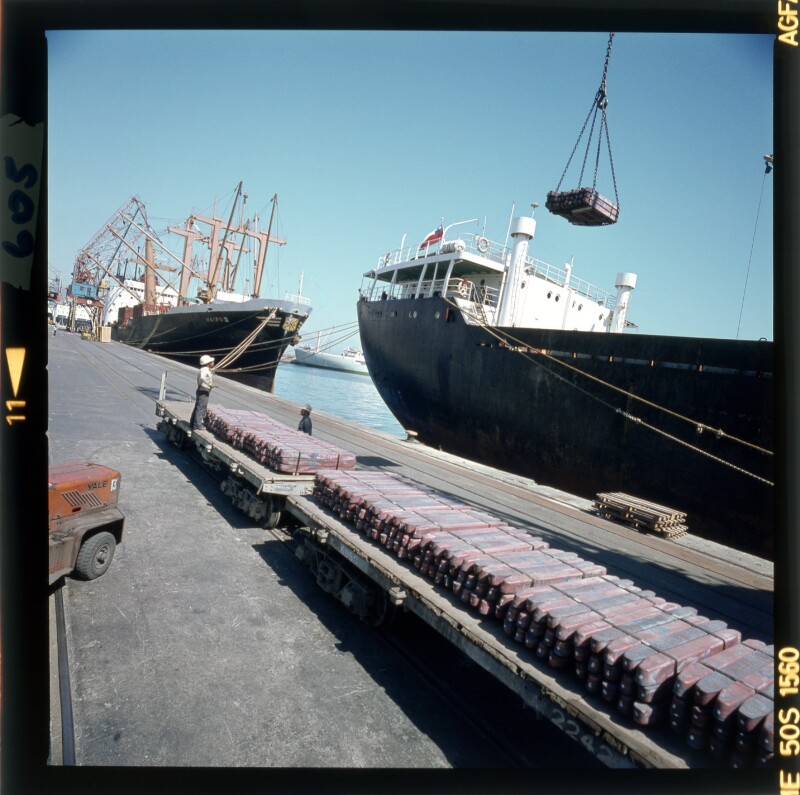 [Cargamento de lingotes de cobre en contenedores] [fotografía] Jack Ceitelis.
