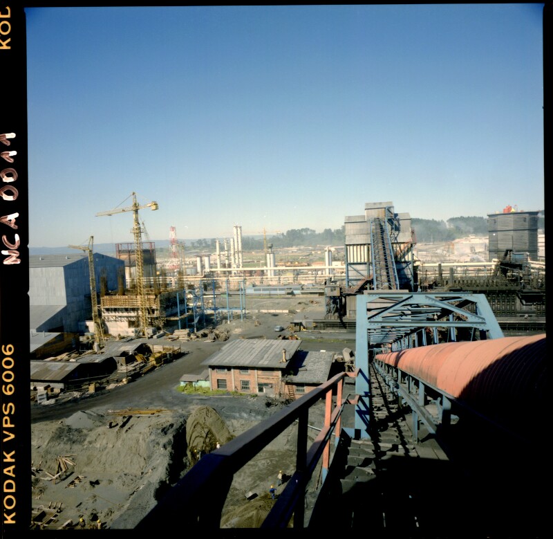 [Carbón conducido por la cinta transportadora hasta el cargador móvil, instalado en el muelle de embarque; mina de carbón de Lota] [fotografía] Ignacio Hochhäusler.