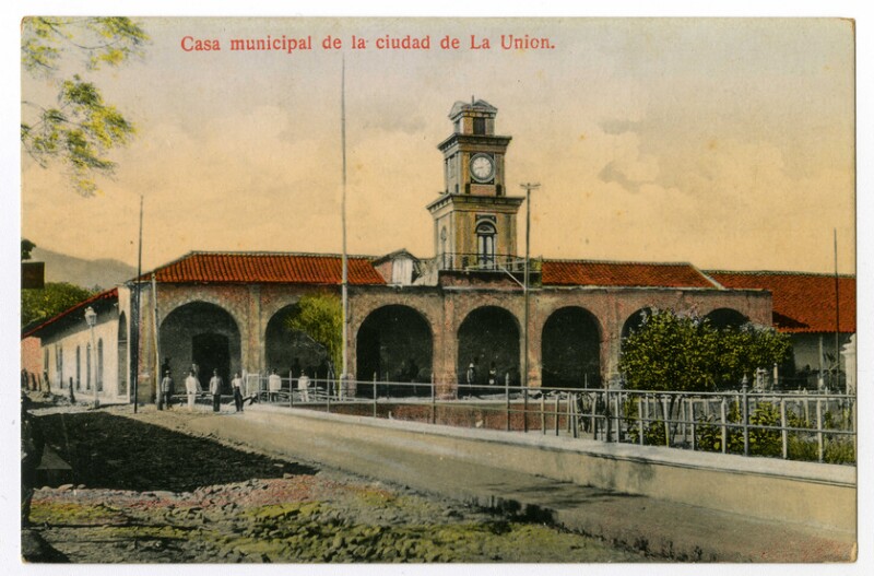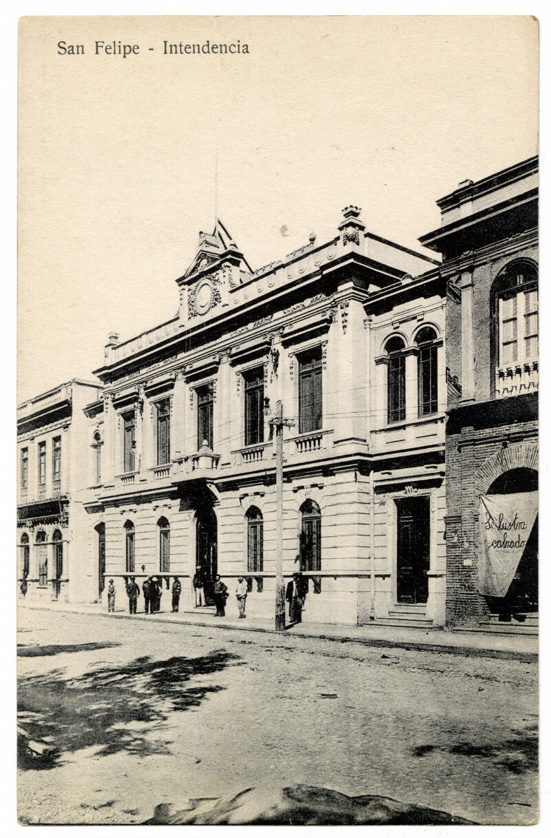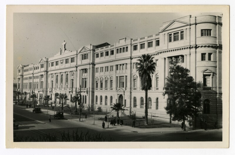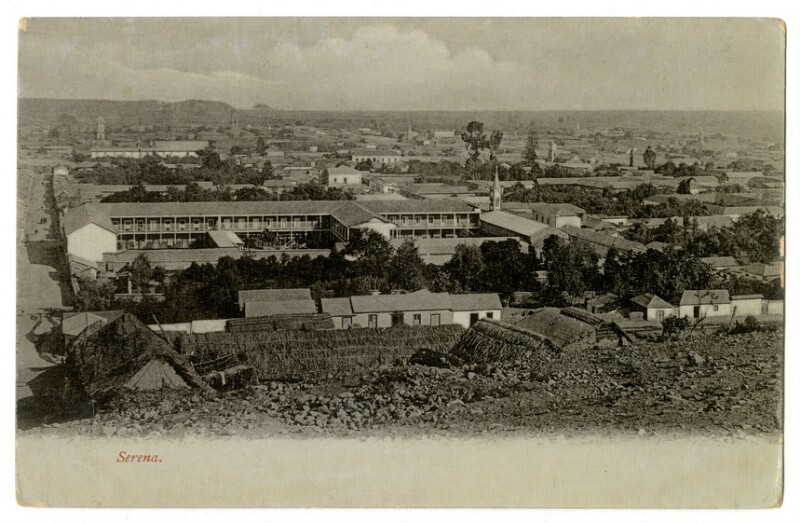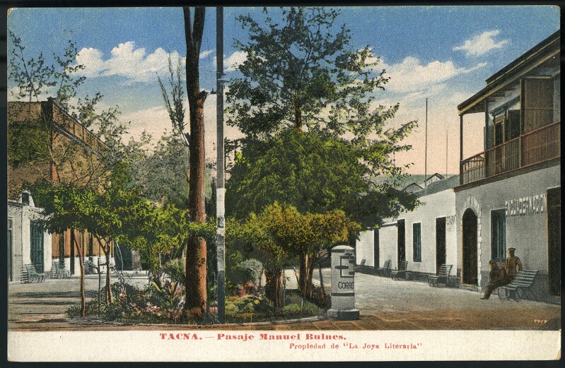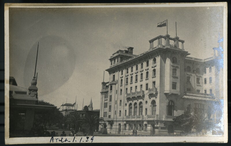 Antofagasta (Chile), Bancos é Intendencia : [Banco Español, a un costado de la Plaza Colón, vereda norte; Edificio del Banco Anglo Sudamericano, y la Intendencia entre otros edificios, vereda sur; al fondo, la Cordillera de la Costa] [fotografía].