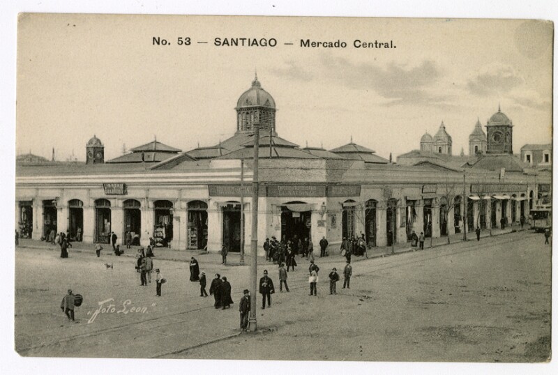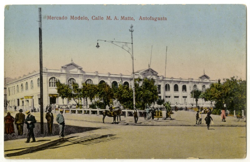 Antofagasta (Chile). Mercado Modelo [frente a la Plaza Sotomayor, antigua Plaza del Ferrocarril] [fotografía] Imprenta Barcelona.