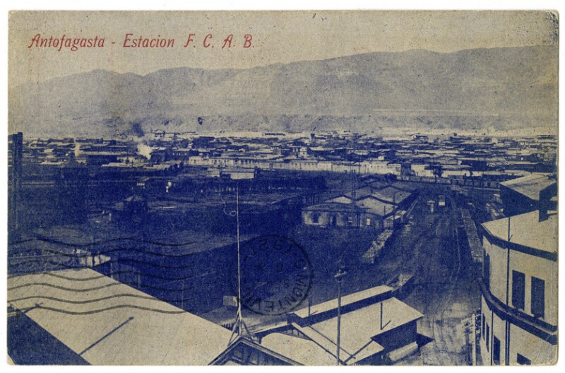 Tarjetas postales - Patrimonio cultural - Antogafasta (Chile) - Nogueira, M. - Julián - Estación del Ferrocarril de Antofagasta a Bolivia (FCAB) (Chile) - Historia - Fotografías - Arquitectura