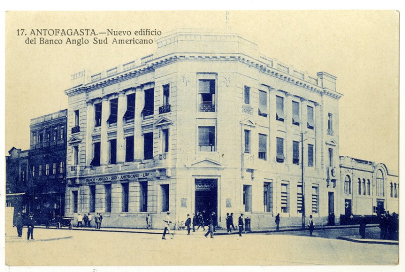 17. Antofagasta-Nuevo edificio del Banco Anglo Sud Americano [Esquina sur este de las calles Prat y San Martín, Actualmente, Banco del Estado] [fotografía] Fernández y Heras.
