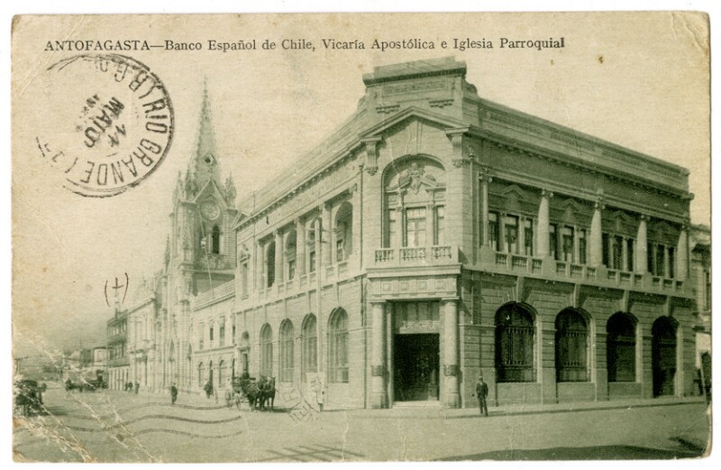 Tarjetas postales - Catedral San José (Antofagasta, Chile) - Banco Español (Antofagasta, Chile) - Antogafasta (Chile) - Banco Santander (Chile) - Historia - Fotografías - Edificios históricos