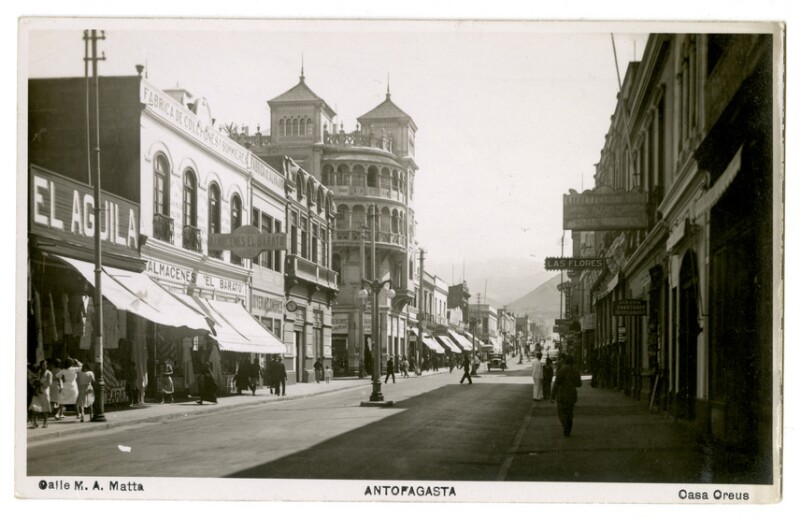 Historia - Fotografías - Arquitectura - Calles - Antofagasta (Chile) - Edificios históricos - Tarjetas postales - Casas comerciales - Calle Manuel Antonio Matte (Antofagasta, Chile) - Palacio Giménez (Antofagasta, Chile) - Almacenes El Barco (ntofagasta, Chile) - Casa El Vaticano (Antofagasta, Chile) - Casa Gómez (Antofagasta, Chile)
