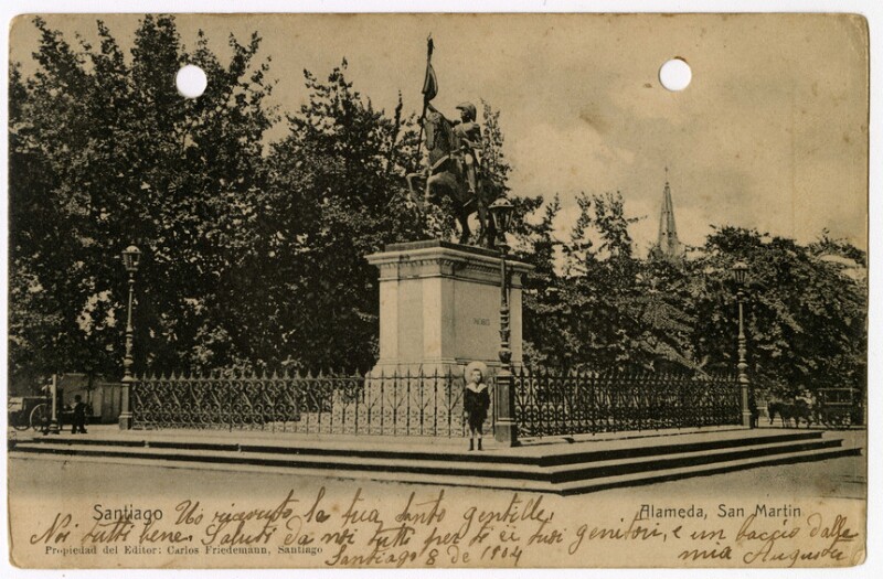 Alameda, Estatua San Martín , Santiago [fotografía] C. Kirsinger & Cia.