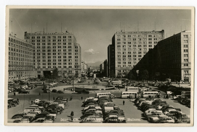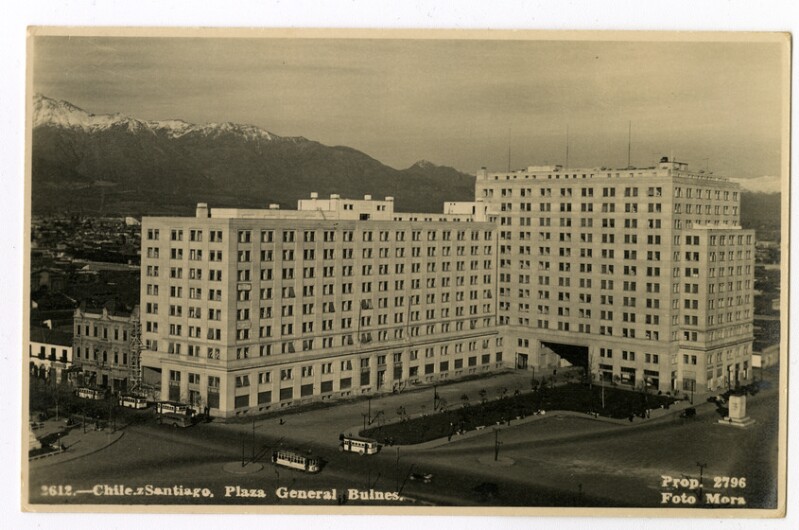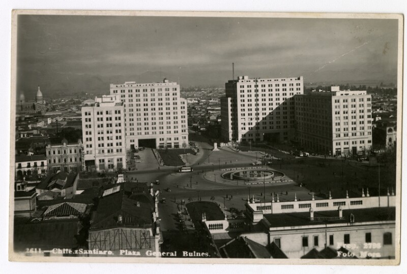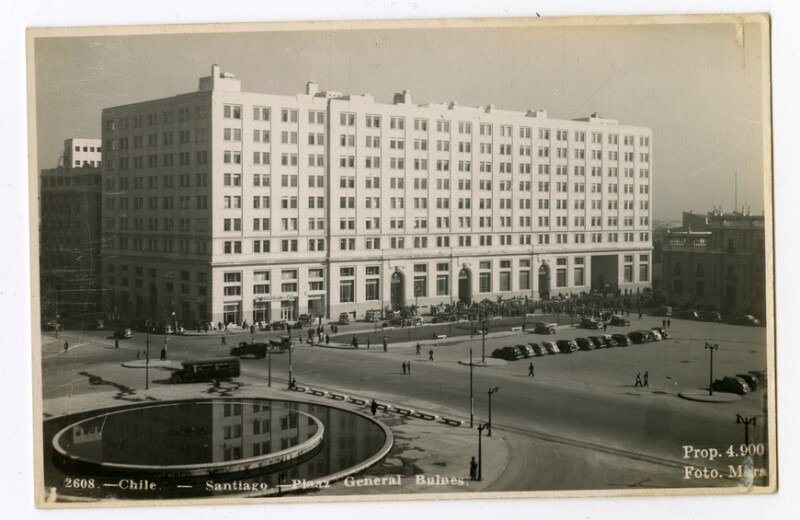 Historia - Fotografías - Arquitectura - Edificios históricos - Transporte de pasajeros - Tarjetas postales - Automóviles antiguos y clásicos - Barrios - Arquitectos - Brunner, Karl - Fuentes de agua - Santiago (Chile : Ciudad) - Edificios, estructuras, etc - Vera Mandujano, Carlos - Plaza General Bulnes (Santiago, Chile) - Morrison y Cia