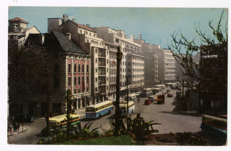 16. Antofagasta-Edificio de la Intendencia : [Góndola (transporte colectivo) y automóviles, frente a la Intendencia] [fotografía] Foto Villalon.