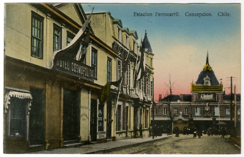 Arquitectura del paisaje - Plaza España (Concepción, Chile) - Empresa de los Ferrocarriles del Estado (Chile) - Historia - Fotografías - Arquitectura - Concepción (Chile) - Retratos - Estaciones de ferrocarril - Tarjetas postales - Niñas - Urbanismo